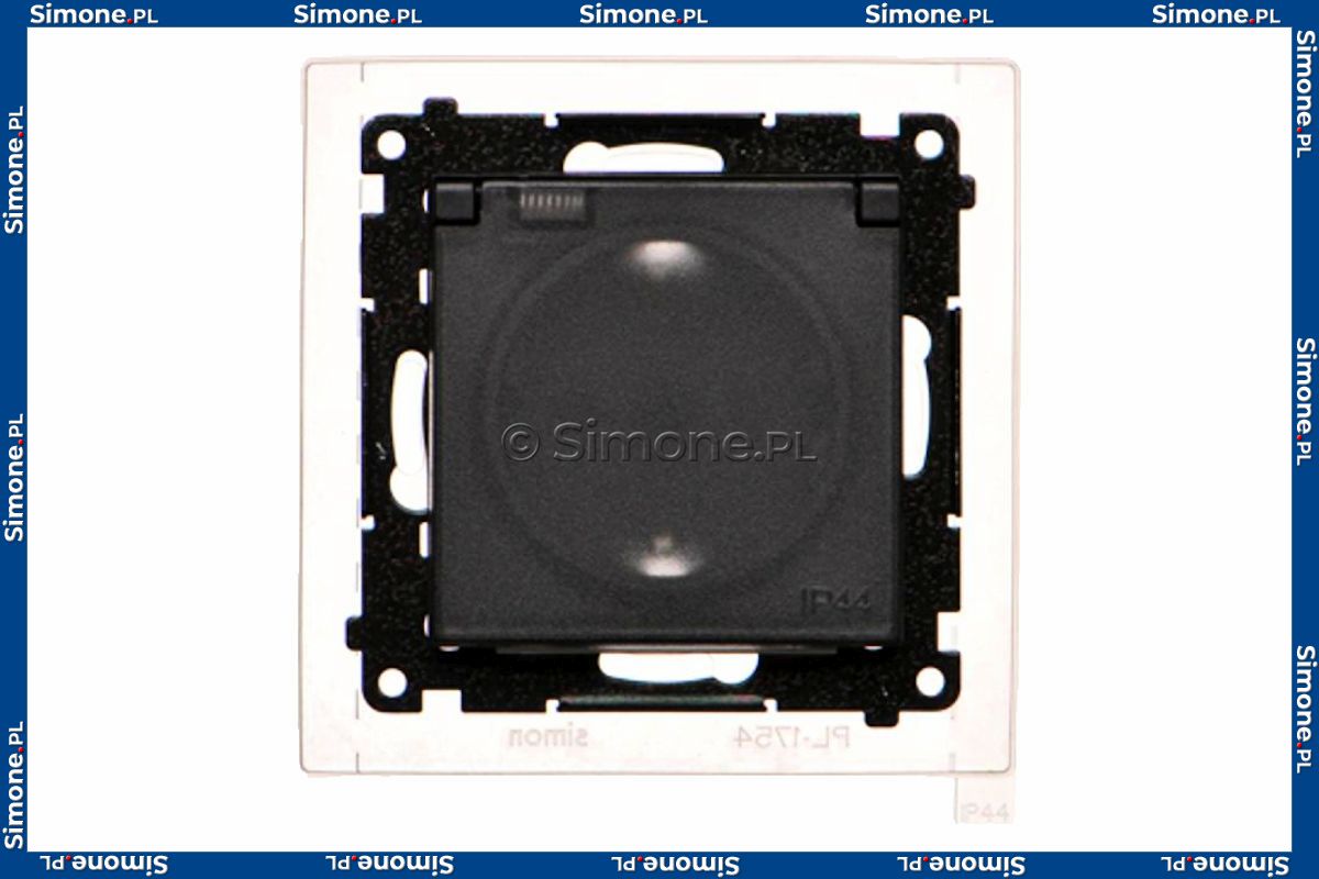 TGSZ1BCZ.01/149A Gniazdo hermetyczne Schuko z przesłoną torów prądowych, uszczelką ramki i klapką transparentną 16A, szybkozłącza Czarny Mat Simon 55 - Widok z przodu