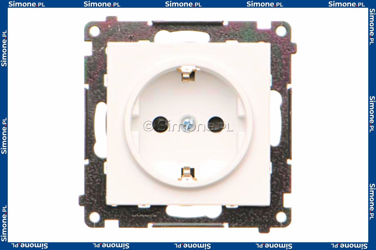 TGSZ1CZ.01/111 Gniazdo pojedyncze Schuko z przesłoną torów prądowych 16A, szybkozłącza Biały Mat Simon 55 - Widok z przodu