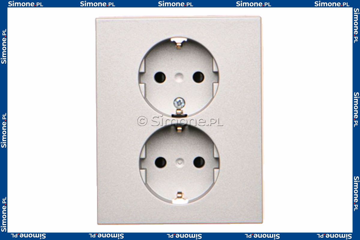 Gniazdo podwójne typu Schuko, gniazdo kompletne - monoblok, nie pasuje do ramek Aluminium Mat Simon 55