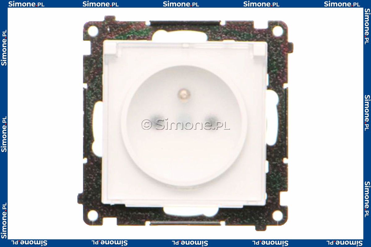 Gniazdo hermetyczne z bolcem uziemiającym do wersji IP44, przesłoną torów prądowych i klapką transparentną 16A, szybkozłącza Biały Mat Simon 55