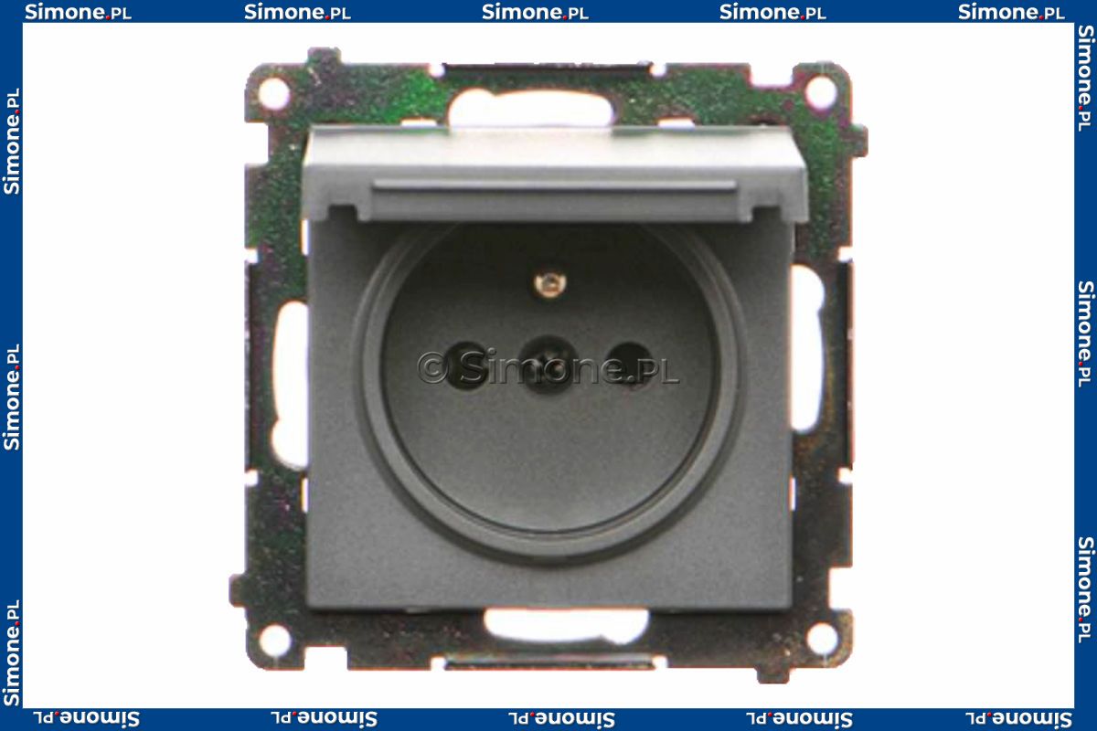 Gniazdo hermetyczne z bolcem uziemiającym do wersji IP44, przesłoną torów prądowych i klapką w kolorze wyrobu 16A, szybkozłącza Grafitowy Mat Simon 55