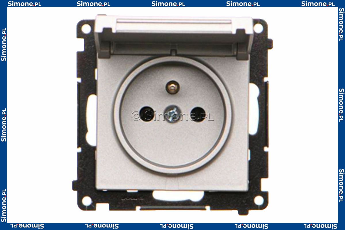 Gniazdo hermetyczne z bolcem uziemiającym do wersji IP44, przesłoną torów prądowych i klapką w kolorze wyrobu 16A, szybkozłącza Aluminium Mat Simon 55