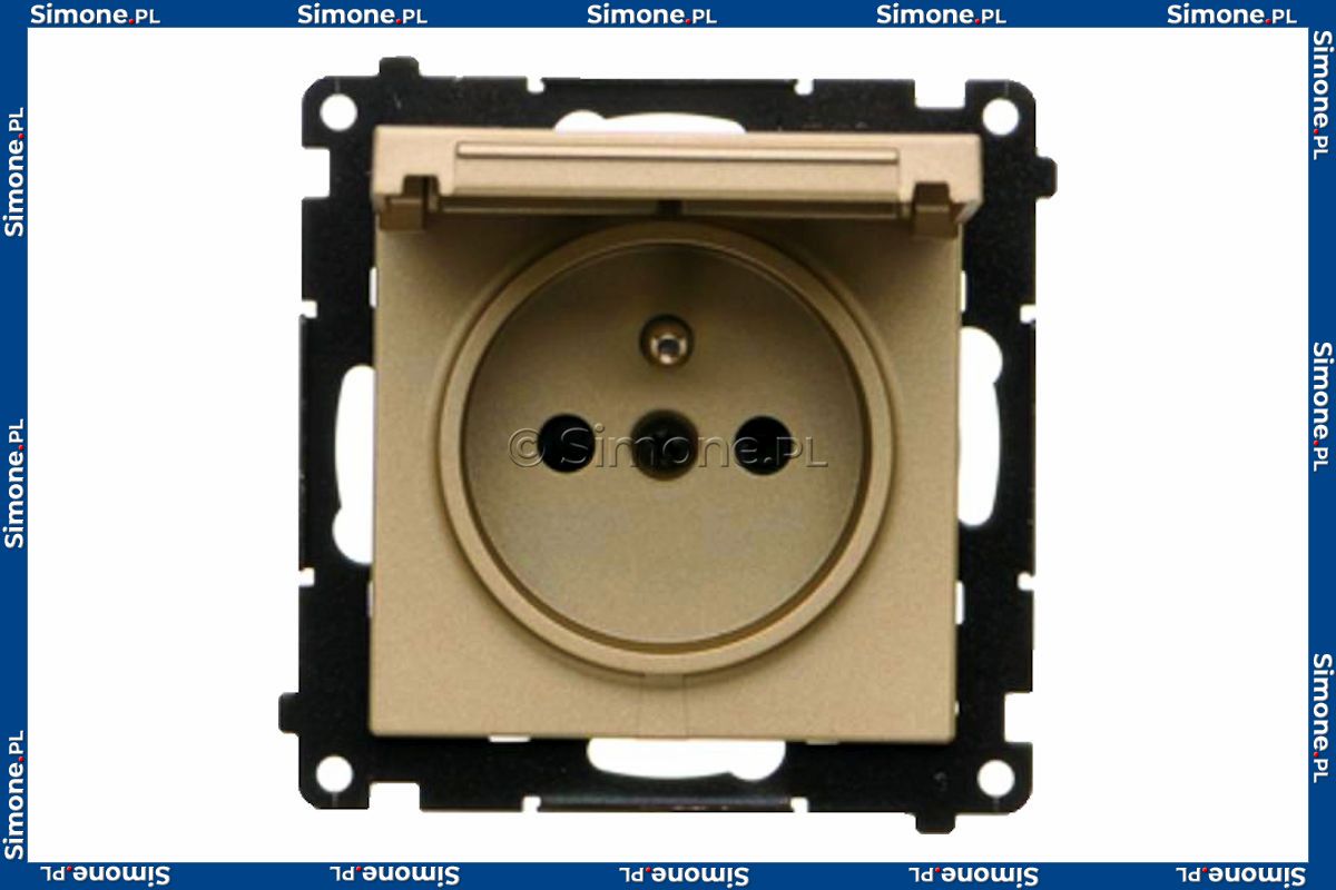 Gniazdo hermetyczne z bolcem uziemiającym do wersji IP44, przesłoną torów prądowych i klapką w kolorze wyrobu 16A, szybkozłącza Szampański Mat Simon 55