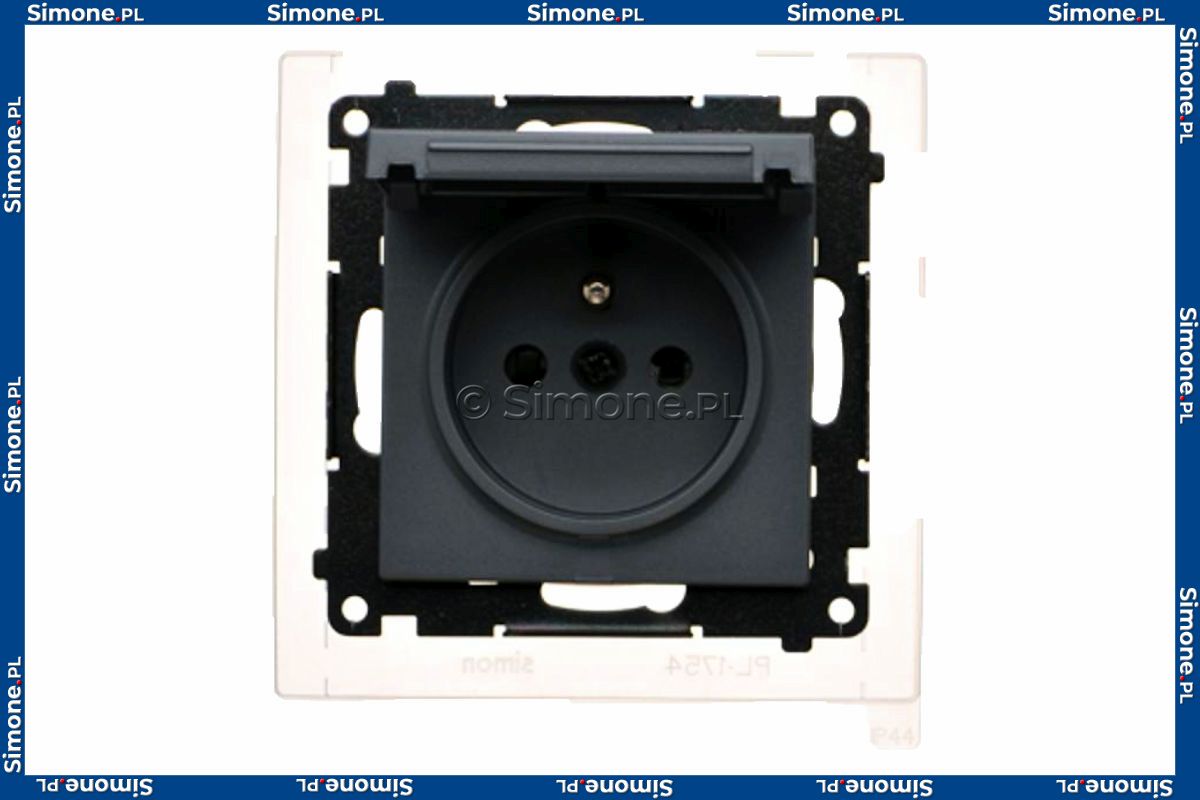 Gniazdo hermetyczne z bolcem uziemiającym, przesłoną torów prądowych i klapką w kolorze wyrobu 16A, szybkozłącza Grafitowy Mat Simon 55