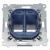 Biały wyłącznik dotykowy Simon 55 z niebieską ramką, zamontowany na ścianie w nowocześnie urządzonym pokoju z żółtą lampką na biurku