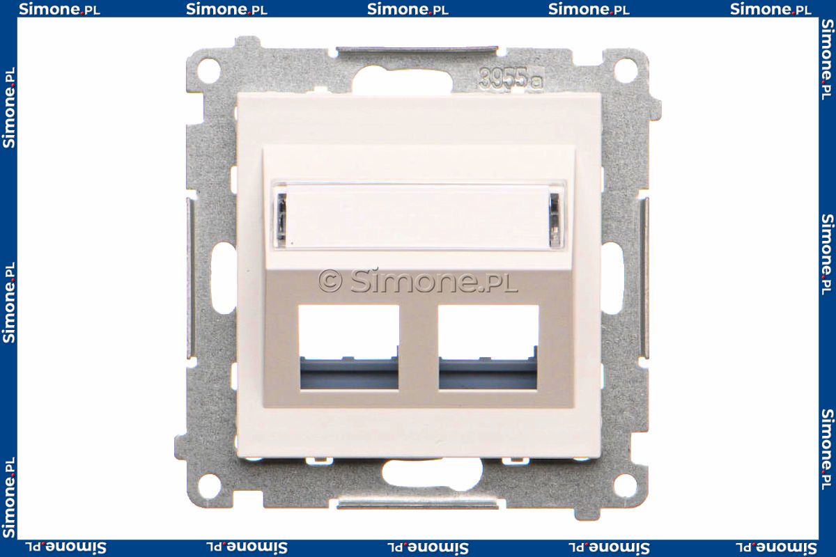 Pokrywa gniazd teleinformatycznych na Keystone skośna podwójna z polem opisowym Biały Mat Simon 55