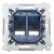 Biały wyłącznik dotykowy Simon 55 z niebieską ramką, zamontowany na ścianie w nowocześnie urządzonym pokoju z żółtą lampką na biurku
