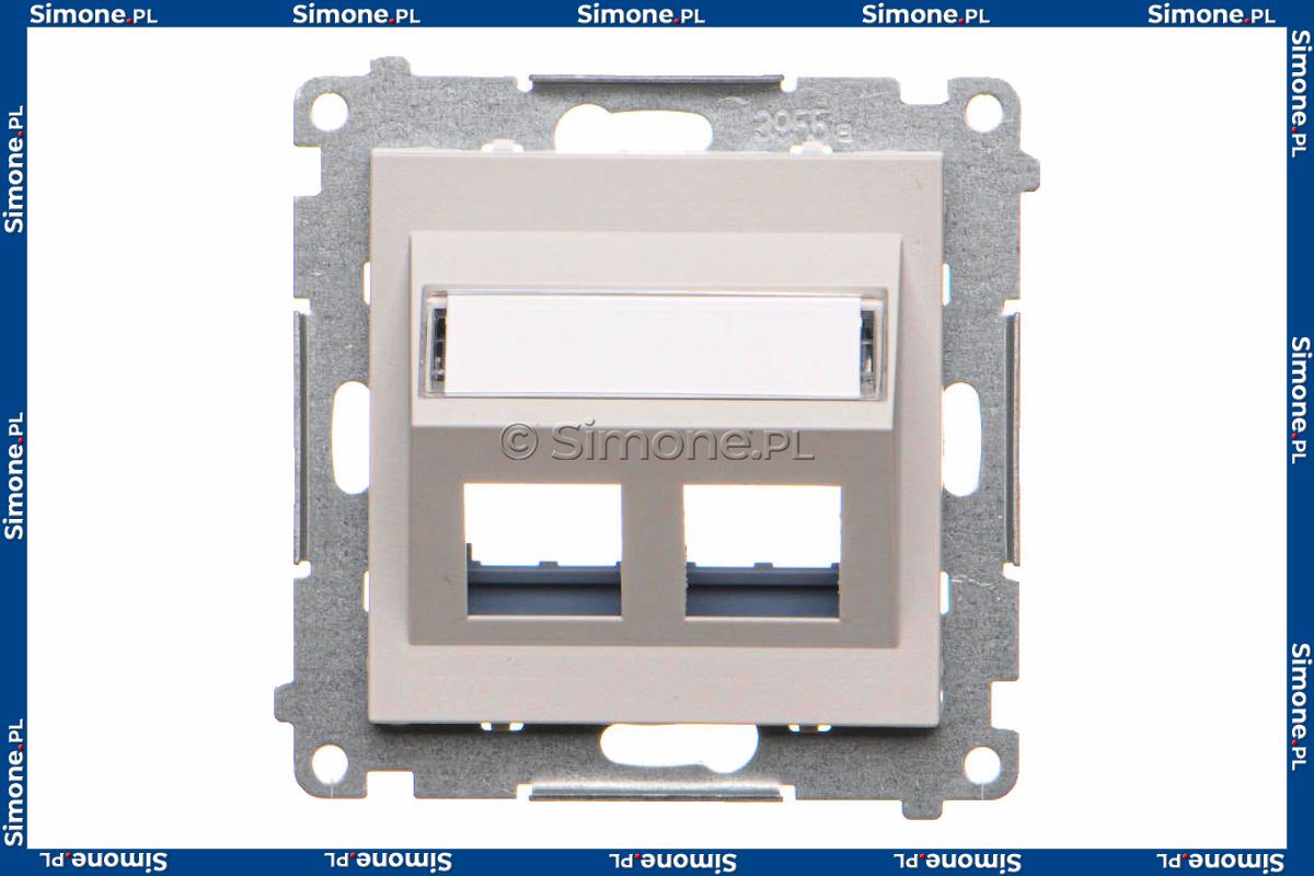 TKP2S.01/114 Pokrywa gniazd teleinformatycznych na Keystone skośna podwójna z polem opisowym Jasnoszary Mat Simon 55 - Widok z przodu
