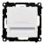 Biały wyłącznik dotykowy Simon 55 z niebieską ramką, zamontowany na ścianie w nowocześnie urządzonym pokoju z żółtą lampką na biurku