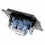 Szkic zdjęcia gniazdka elektrycznego obok którego znajdują się szczegółowe dane techniczne produktu-