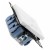 Biały wyłącznik dotykowy Simon 55 z niebieską ramką, zamontowany na ścianie w nowocześnie urządzonym pokoju z żółtą lampką na biurku