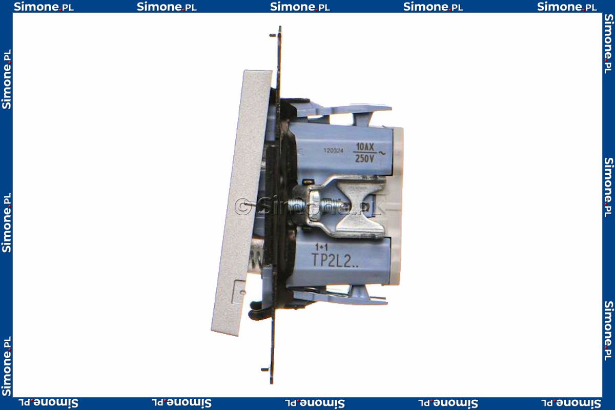 TP2L2.01/143 Przycisk zwierny podwójny bez piktogramów z podświetleniem typu LED w kolorze białym 10A (osobne podświetlenie dla każdego klawisza) Aluminium Mat Simon 55 - Widok z przodu
