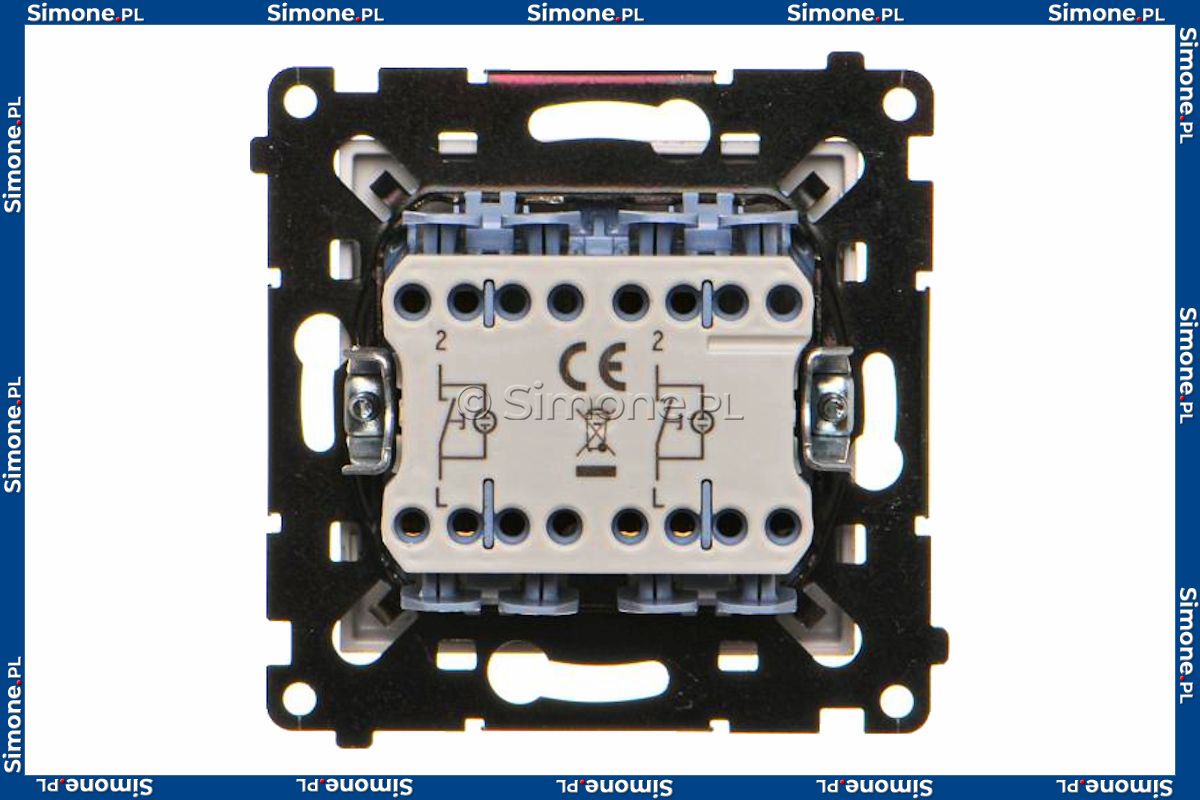 Przycisk zwierny podwójny bez piktogramów z podświetleniem typu LED w kolorze białym 10A (osobne podświetlenie dla każdego klawisza) Aluminium Mat Simon 55