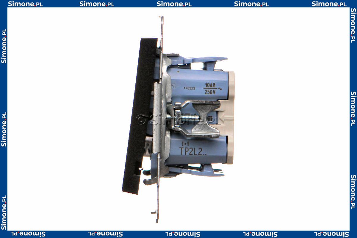 TP2L2.01/149 Przycisk zwierny podwójny bez piktogramów z podświetleniem typu LED w kolorze białym 10A (osobne podświetlenie dla każdego klawisza) Czarny Mat Simon 55 - Widok z przodu
