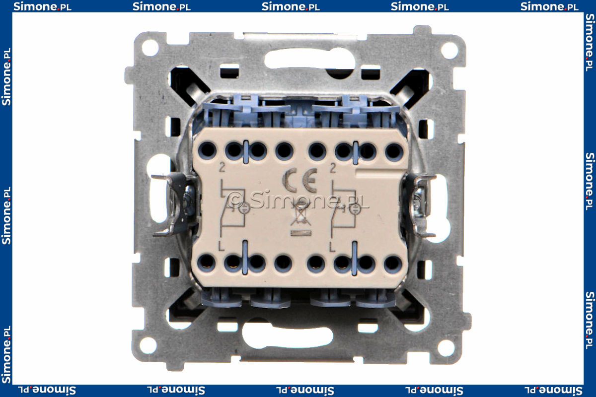 Przycisk zwierny podwójny bez piktogramów z podświetleniem typu LED w kolorze białym 10A (osobne podświetlenie dla każdego klawisza) Czarny Mat Simon 55
