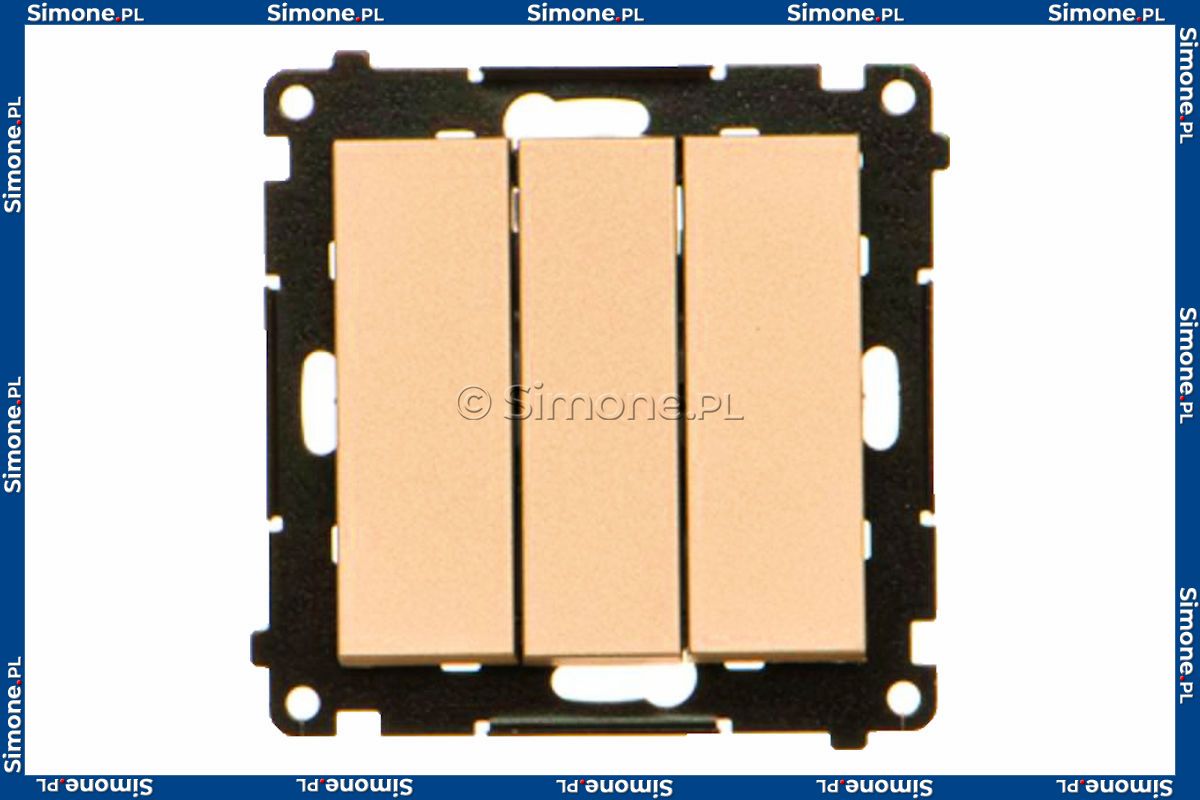 Przycisk zwierny potrójny z podświetleniem typu LED w kolorze białym Szampański Mat Simon 55