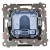Biały wyłącznik dotykowy Simon 55 z niebieską ramką, zamontowany na ścianie w nowocześnie urządzonym pokoju z żółtą lampką na biurku