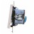 Szkic zdjęcia gniazdka elektrycznego obok którego znajdują się szczegółowe dane techniczne produktu-