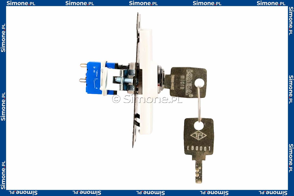Możliwość wyjęcia klucza w każdej pozycji, W komplecie z produktem 2 szt. kluczyków., Zdjęcie ma charakter poglądowy, ramka montażowa produktu występuje również w wersji czarnej, ocynkowanej. Odmienny kolor wynika z ciągłego rozwoju produktów Kontakt-Simon.