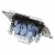 Szkic zdjęcia gniazdka elektrycznego obok którego znajdują się szczegółowe dane techniczne produktu-
