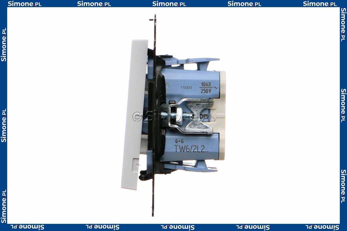 TW6/2L2.01/114 Łącznik schodowy podwójny z podświetleniem typu LED w kolorze białym 10A (osobne podświetlenie dla każdego klawisza) Jasnoszary Mat Simon 55 - Widok z przodu
