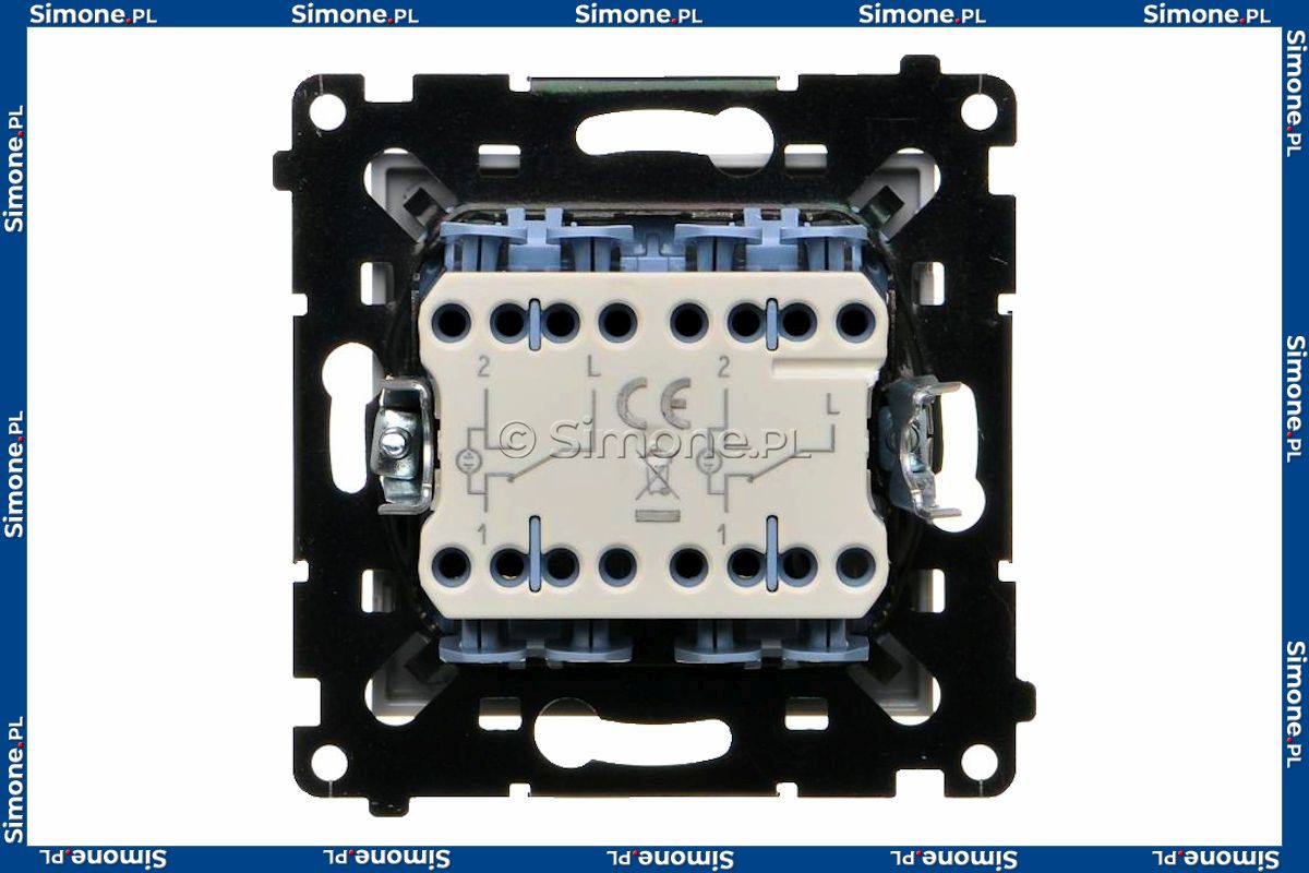 Łącznik schodowy podwójny z podświetleniem typu LED w kolorze białym 10A (osobne podświetlenie dla każdego klawisza) Jasnoszary Mat Simon 55
