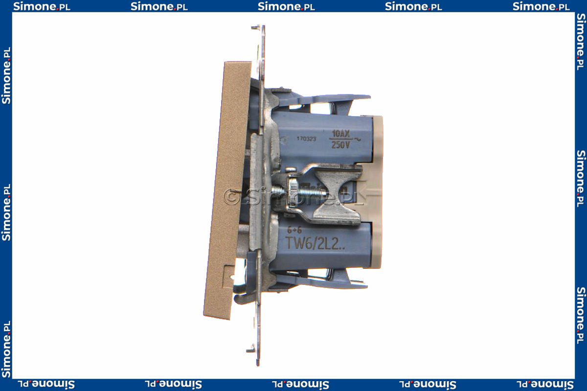 TW6/2L2.01/144 Łącznik schodowy podwójny z podświetleniem typu LED w kolorze białym 10A (osobne podświetlenie dla każdego klawisza) Szampański Mat Simon 55 - Widok z przodu