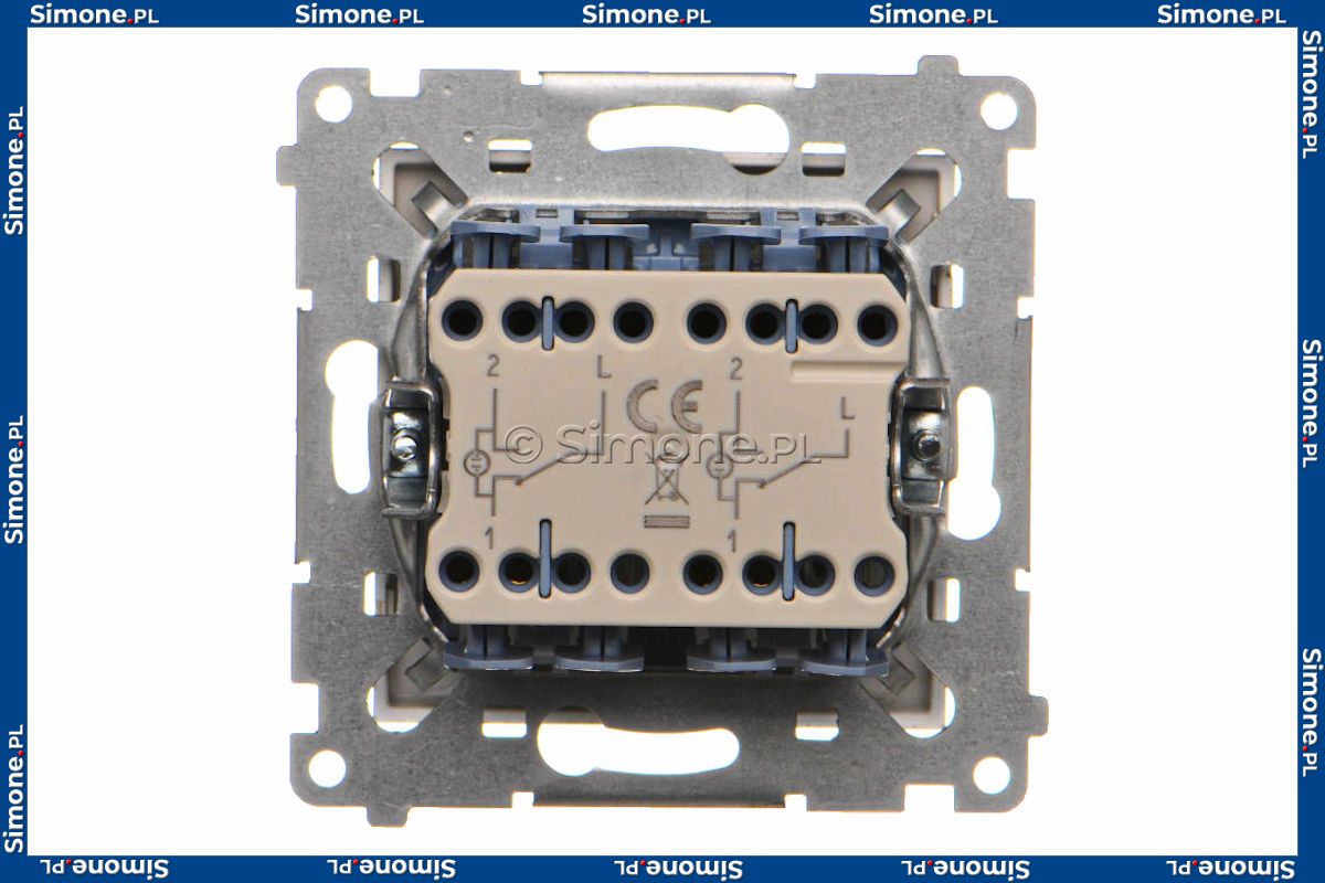 Łącznik schodowy podwójny z podświetleniem typu LED w kolorze białym 10A (osobne podświetlenie dla każdego klawisza) Szampański Mat Simon 55