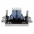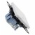 Biały wyłącznik dotykowy Simon 55 z niebieską ramką, zamontowany na ścianie w nowocześnie urządzonym pokoju z żółtą lampką na biurku