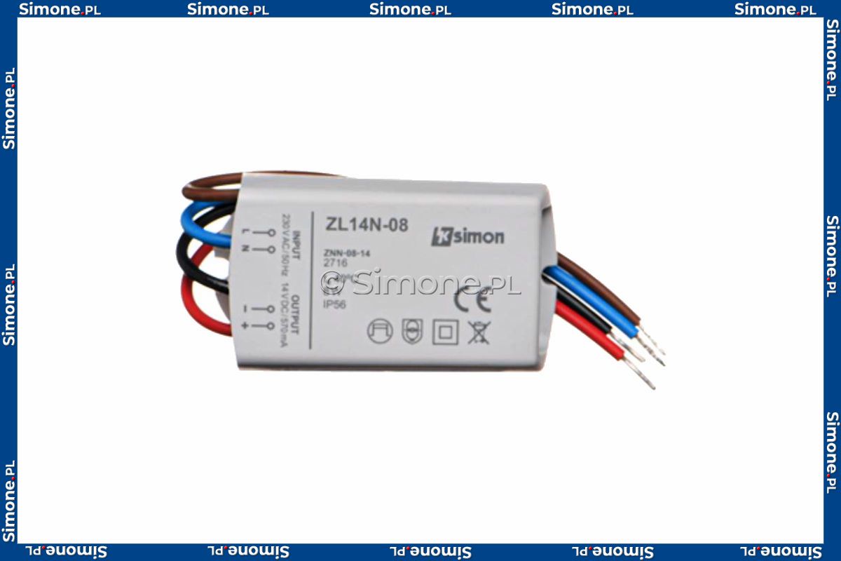 ZL14N-08 Zasilacz LED natynkowy 14V, DC, 8W Simon 55 - Widok z przodu