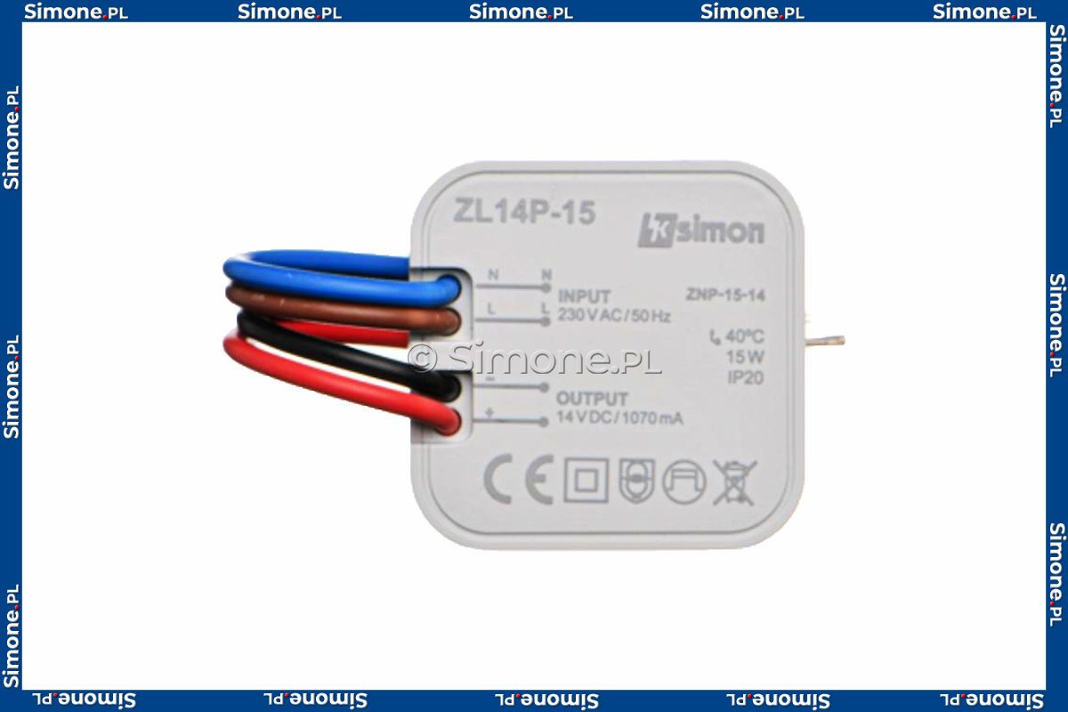 ZL14P-15 Zasilacz LED dopuszkowy 14V, DC, 15W Simon 54 - Widok z przodu